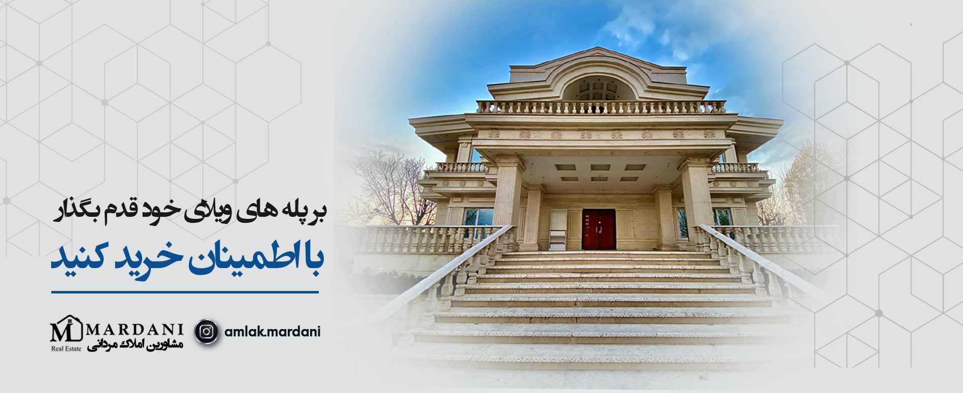 گروه مشاورین املاک مردانی با کادری مجرب و و کاردان به تعداد ۱۱ مشاور در حوزه معاملات املاک کشور توانسته است نیازهای گسترده مشتریان خود را به خوبی تامین کند و در راستای خرید و فروش و همچنین رهن و اجاره املاک مسکونی.تجاری و صنعتی و تخصص در خرید و فروش باغ ویلا های لوکس و اکازیون با قیمتهای مناسب در مناطق ( اندیشه / شهریار / ملارد و صفادشت ) آماده خدمت رسانی به هممیهنان عزیزمان می باشد .