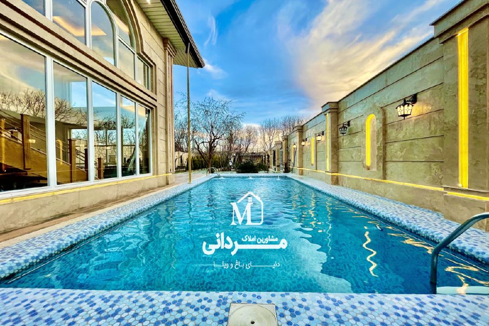 استخر بزرگ در گوشه ای از محوطه باغ که دارای تاسیسات کامل و بروز میباشد