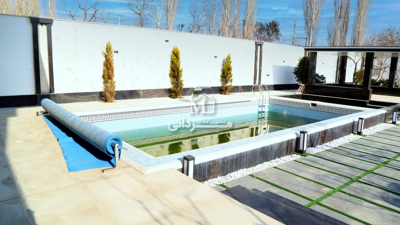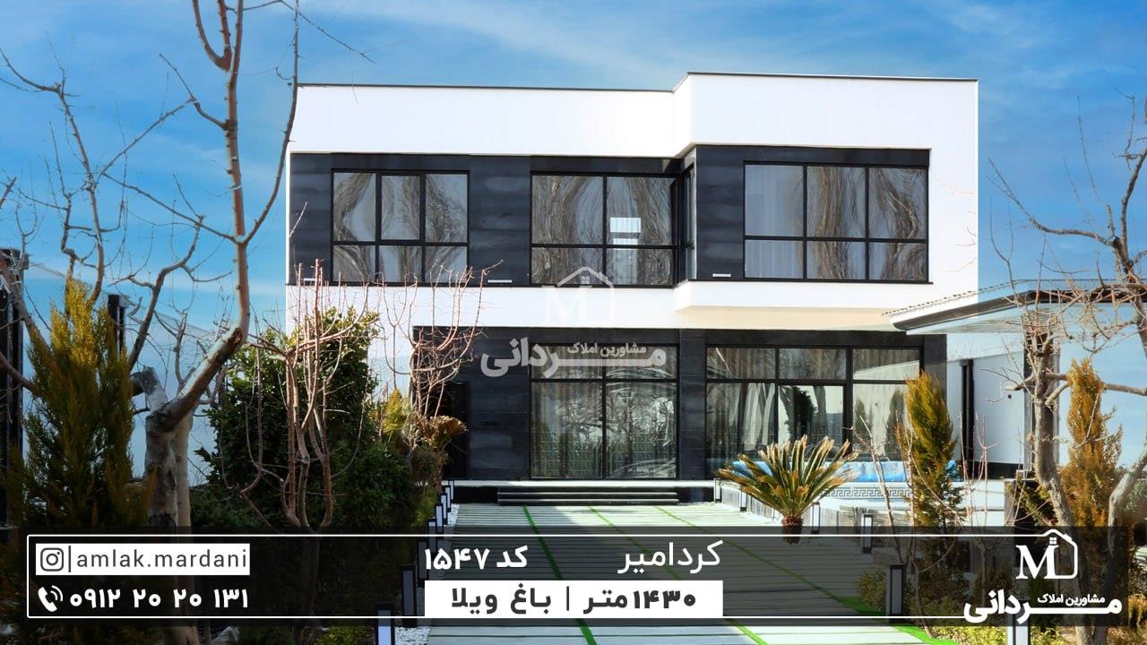 باغ ویلای 1430 متری با طراحی و ساخت فوق العاده جذاب ، در منطقه سرسبز و ویلایی نشین کردامیر شهریار واقع شده است این باغ ویلا به صورت مدرن و دوطبقه طراحی شده و بخشهای داخلی بنای ان در طبقه اول ، پذیرایی مجلل همراه با نورپردازی داخلی شیک ، آشپزخانه نقلی در مجاورت پذیرایی فول تجهیزات و کابینت شده ، پنجرههای بلند وکشیده به سمت محوطه باغ ویلا که نورگیری سالن را دوبرابرکرده ، و در طبقه دوم که پلههای آن در مقابل درب ورودی و انتهای پذیرایی واقع شده ، سه اتاق خواب بزرگ و دلباز به صورت مستر و ویویی بی نظیر به سمت طبیعت بکر منطقه ، قرار گرفته اند.