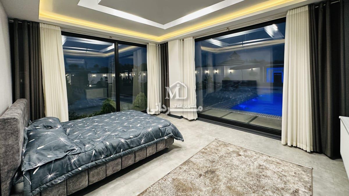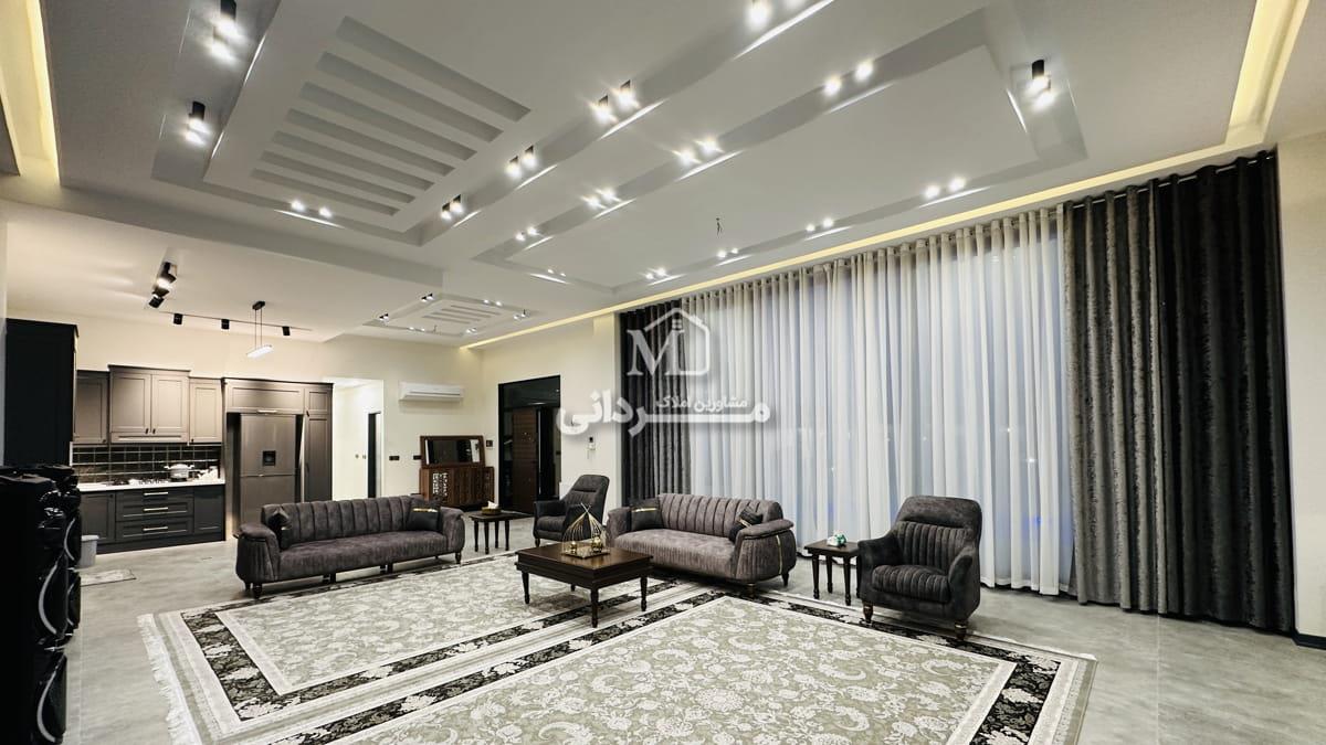 باغ ویلا بنایی 300 متری طراحی شده به صورت مدرن دارد که فضای داخلی آن را سالن پذیرایی مجلل با نورپردازی داخلی ، دوطرف نورگیر ، آشپزخانه با امکانات کامل ، سه اتاق خواب بزرگ و مستر با کمد دیواری مناسب ، سرویس بهداشتی ایرانی وفرنگی ، کولر گازی ، شامل میشود. علاوه براین بنایی 50 متری با تجهیزات و امکانات کامل بعنوان سوئیت مهمان و همچنین بنایی 40 متری برای اسکان دائم سرایداری در نظرگرفته شده است.