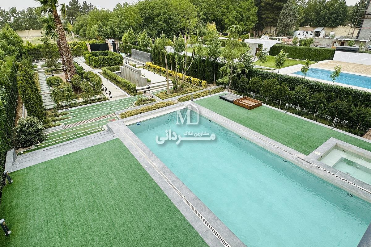 محوطه این باغ ویلا با استخر و جکوزی چهار فصل، درختان و گیاهان تزیئنی زیبا ، آنمای زیبا ، چمن مصنوعی که فضارا سرسبزترکرده ، حیاط خلوت دنج در پشت ساختمان همراه با آبنما ،محوطه سازی ، نورپردازی حرفه ای ، فضایی فوق العاده دلنشین . آرامش بخش همراه با امکانات عالی فراهم کرده است.