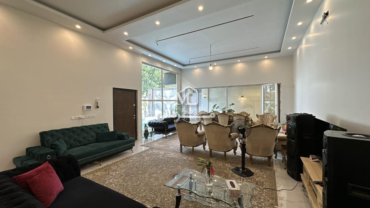 در انتهای این محوطهی بی نظیر ، بنایی 150 متری با طراحی مدرن و نمایی همگون با دیوارهای حیاط را مشاهده میکنیم که سالن پذیرایی مجلل آن ویویی عالی با شیشههای بلند به سمت محوطه دارد علاوه بر هر دو اتاق خواب نیز نورگیری عالی و ویویی چشمگیر به سمت حیاط باغ ویلا دارند در ادامه آشپزخانه را داریم که شامل فول کابینتهای مدرن با تجهیزات کامل میشود.