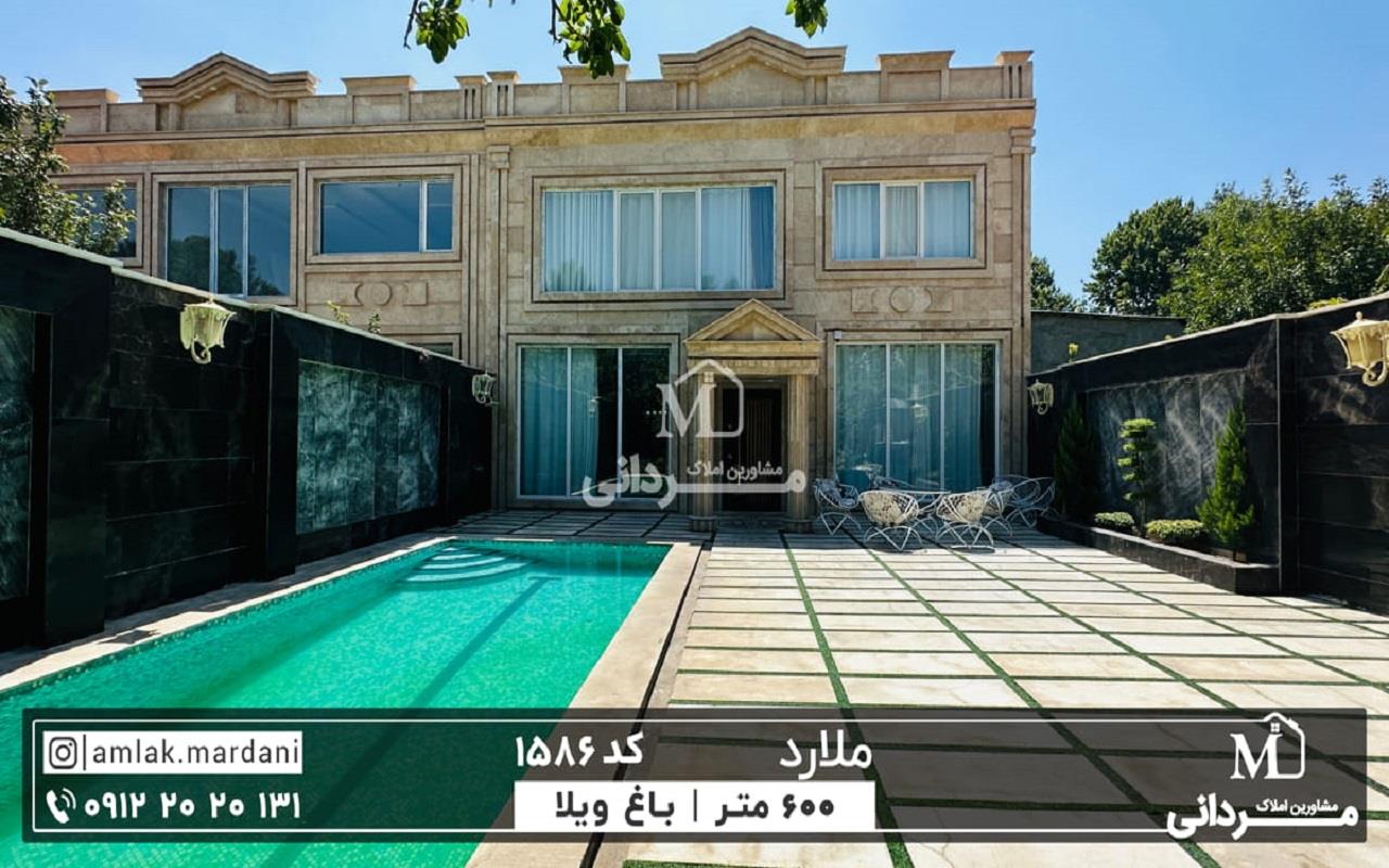 خانه ویلایی 600 متری با طراحی و ساخت بی نظیر در منطقه ای ویلایی نشین و خوش آب و هوا ، ملارد ، شهرستانی در حومه تهران با دسترسی و فاصله بسیار نزدیک با پایتخت واقع شده است. این خانه ویلایی بنایی 20 متری دوبلکس با طراحی مدرن ولوکس دارد که فضای داخلی آن بسیار شکیل و شامل سالن پذیرایی مجلل با نورپردازی داخلی ، کاغذ دیواری ، تی وی وال جذاب ، آشپزخانه فول کابینت با تجهیزات برند ، اتاق خوابهای بزرگ و دلباز که یکی به صورت مستر ، سرویس بهداشتی ایرانی و فرنگی ، میشود.نمای این ساختمان تماما از سنگ کار شده و با پنجرههای بزرگ و قدی که دارد نورگیری عالی به کل فضای داخلی ایجاد کرده است.