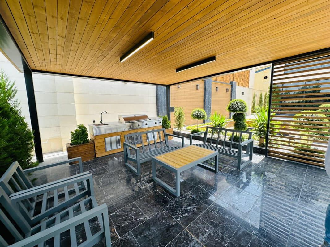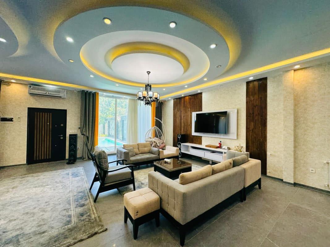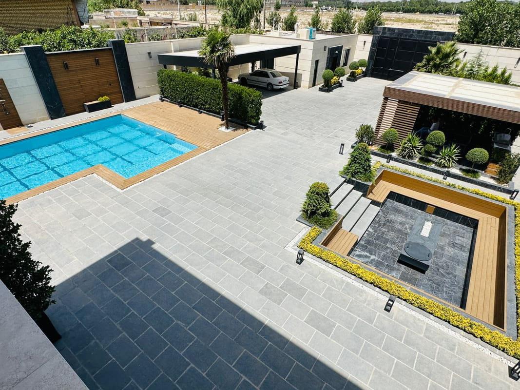 باغ ویلای 1070 متری با امکانات و تجهیزات فوق العاده کامل ، بنای 615 متری قانونی با پایان کار از شهرداری در منطقهی ویلایی نشین شهریار با فاصله 100 متری از جاده اصلی واقع شده است. برای توصیف فضای این باغ ویلای جذاب از محوطه آن آغاز میکنیم. محوطه باغ ویلا همگون با بنا و فضای داخلی آن ، به صورت مدرن طراحی شده و در بدو ورود به باغ ویلا فضاسازی عالی المانهای رفاهی تفریحی همچون استخر چهار فصل همراه جکوزی ، آتشگاه ( فایرپلیس) 15 نفره هیزمی و گازی ، آلاچیق با تجهیزات داخلی ، ابنما در مجاورت استخر ، و درکنار انها درختان و درختچههای سرسبز ، خودنمایی و توجه شما را به خود جلب خواهند کرد.