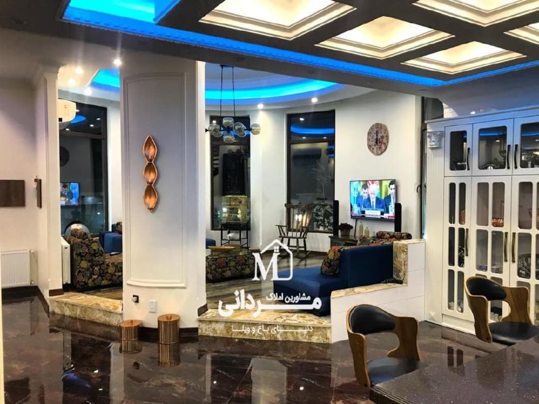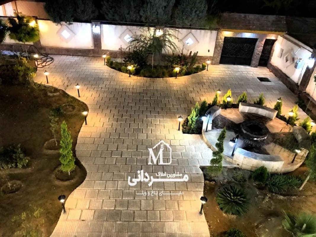 استفاده به جا از سنگ فرشها ، گلها و گیاهان زینتی گران قیمت ، آتشکده با طراحی مدرن و نورپردازی حرفه ای در طول محوطه گوشه ای از زیبایی محوطهی این ملک میباشد، در انتهای باغ ویلایی سوپر لوکس و لاکچری به چشم میخورد که به راستی نگین ویلاهای این منطقه محسوب میشود ، نمای رومی و کلاسیک با نورپردازی بی نظیر و حرفه ای ملک نمای ویلا را بسیار شکیلتر نموده است ،، در طبقهی زیرین مجموعه استخری بزرگ همراه با سونا و جکوزی و تمامی تجهیزارت با برترین برند و کیفیت موجود در بازار به چشم میخورد که بدون شک این مجموعه را به کاخی مجلل بدل مینماید ، در کنار تمامی این ویژگیها برای مراسمها و جشن هایی که در این مجموعه بر چا میشوند سالن رقصی مجهز نیز در نظر گرفته شده است که مجهز ب سیستم نورپردازی و mma میباشد .از دیگر امکانات این ملک میتوان به tv room ، ، و ویوی جنگلی اشاره کرد