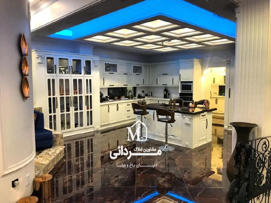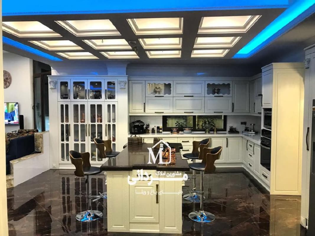 درب ویلا به صورت ریموت دار بوده ، محوطهی ملک به صورت مهندسی طراحی شده و نظم و ترتیبی بی نظیر در طول پیمایش تا ویلا به چشم میخورد ، درب ورودی سلطنتی این ملک بر زیبایی ظاهر آن افزوده است ، کف ویلا تماما ا سرامیک منقش درجه 1 استفاده شده ، ویلا دارای 6 خواب بزرگ و حرفه ای بوده که 5 تای آن مستر میباشد ، خوابهای مستر دارای سرویسهای بهداشتی ایرانی و فرنگی و حمامهای مجهز به جکوزی و اتاق لباس مجهز میباشد ، آشپزخانهی مجموعه با طراحی باز یا در اصطلاح open design فضای مجموعه را بازتر نموده و از دیگر ویژگیهای آن میتوان به استفاده به جا از کابینتهای زمینی و دیواری که همگی بهترین برند بازار " ممبران " هستند اشاره کرد همچنین سقف با ذوق و سلیقهی خاصی به صورت متنوع کناف کاری و نورپردازی شده و با وسواس خاصی از لوسترهای مجلل استفاده شده است ، بدون شک سلیقهی خاصی در طراحی داخلی این ملک به چشم میخورد