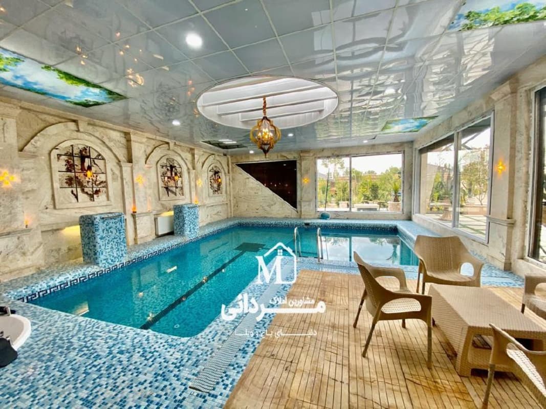 در طبقه همکف ویلا سالن پذیرایی بزرگ جهت میزبانی از میهمانان به همراه سرویس بهداشتی آشپزخانه بزرگ با کابینتهای مدرن که مجهز به تجهیزات کامل است ضمنا این باغ ویلا دارای استخر بزرگ سرپوشیده که مجهز به تصفیه خانه و گرمکن میباشد
